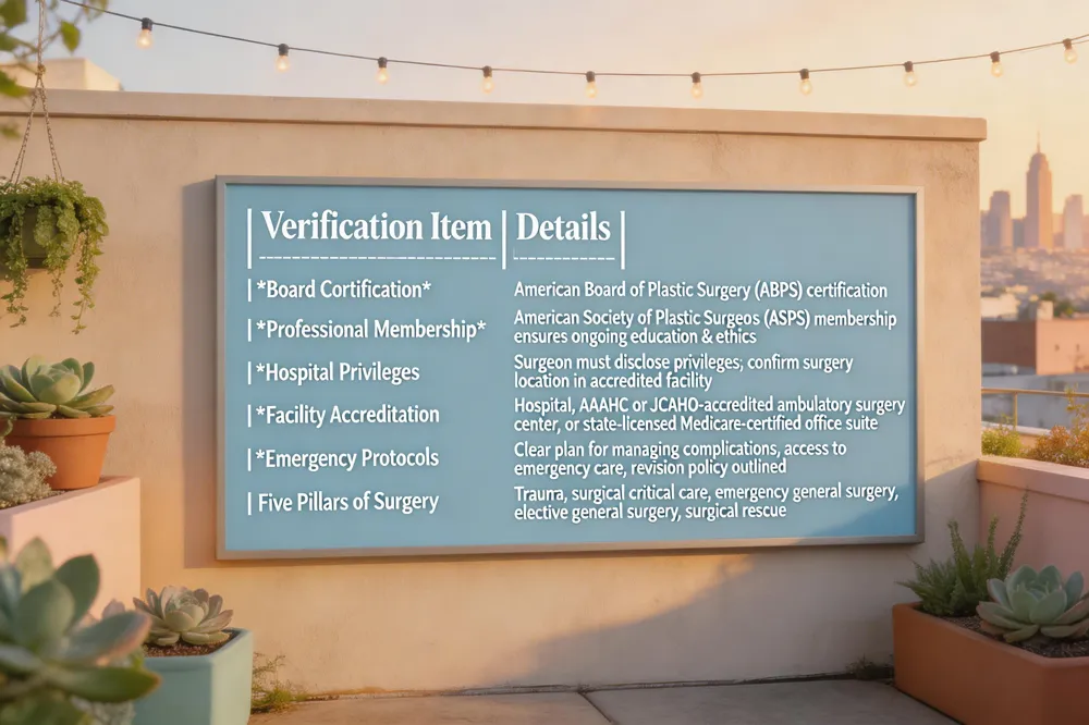 When choosing a plastic surgeon, verify that they are Board certification by the American Board of Plastic Surgery and a member of the American Society of Plastic Surgeons (ASPS), which ensures ongoing education and ethical standards. Ask the surgeon to disclose their hospital privileges and confirm that the surgery will be performed in an accredited facility—whether a hospital, an ambulatory surgery center accredited by AAAHC or JCAHO, or a state‑licensed, Medicare‑certified office‑based suite. Understanding the practice’s emergency protocols and revision policies is critical; a reputable surgeon will outline how complications are managed, the availability of emergency care, and the process for revision surgery if outcomes are unsatisfactory.