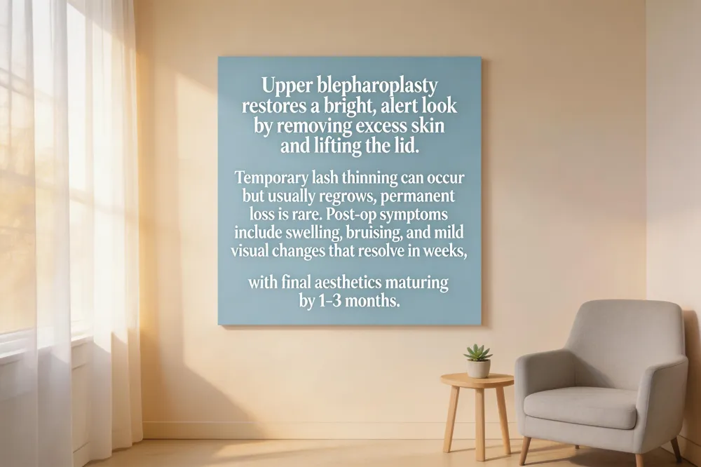 Do you lose your eyelashes with blepharoplasty? Temporary lash thinning is common because the incision and tissue removal may disturb the lash line. Most patients see regrowth within six to twelve months when the surgeon spares follicular zones. Permanent loss is rare and usually linked to inadvertent follicle injury. Micro‑graft transplantation or Latisse can assist if thinning persists.