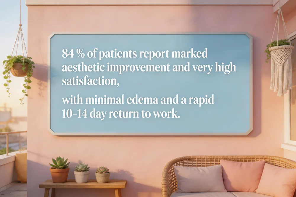 A recent clinical evaluation of 38 patients who underwent combined CO₂ (10,600 nm) and 1540 nm laser‑assisted blepharoplasty reported that In a study of 38 patients, 84 % achieved marked aesthetic improvement (75‑100 % gain) at six‑month follow‑up. while 11 % showed moderate and 5 % slight improvement. No serious adverse effects; mild periorbital erythema and edema occurred in 24 % of cases and resolved within seven days. Patient‑reported satisfaction scores were high, with 84 % very satisfied, 13 % satisfied, and only 3 % not very satisfied. Recovery is typically swift: swelling and bruising peak within the first 48‑72 hours, then subside over the next week. Most patients resume light activities and return to work in 10‑14 days, with full resolution of fine scar maturation occurring by three months. Post‑operative care includes head elevation, cold compresses, preservative‑free eye drops, and avoidance of strenuous exercise, contact lenses, and eye makeup during the first two weeks. A video of laser eyelid surgery (often hosted on clinic websites or Vimeo) demonstrates the CO₂‑laser technique—showing precise skin and fat removal, minimal intra‑operative bleeding, and an operative time of roughly 20‑30 minutes per eye. The footage also highlights rapid recovery, functional improvements such as enhanced peripheral vision, and the subtle, natural‑looking aesthetic results that boost patient confidence.