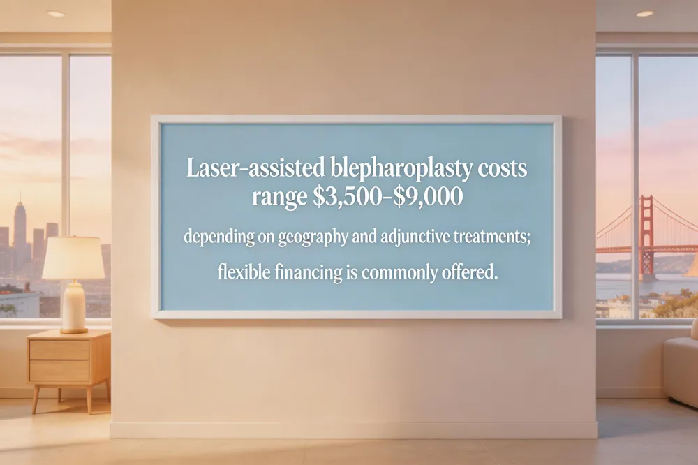 When patients explore laser‑assisted blepharoplasty, understanding the price structure helps set realistic expectations. Pricing ranges for CO₂ laser resurfacing and full blepharoplasty typically start around $3,500 for the laser portion alone, with comprehensive treatment plans—including skin tightening and fine‑line removal—falling between $3,500 and $5,000. Traditional blepharoplasty runs about $3,300–$3,500 in the United States, while lower eyelid lifts average $3,900–$4,000. In high‑cost markets such as San Francisco, bundled fees (surgeon, anesthesia, facility, postoperative care) often rise to $5,000–$9,000 for a full laser‑assisted procedure. Factors influencing total cost include the type of anesthesia (local with mild sedation versus general), the surgical facility’s overhead, and any adjunctive treatments like fractional CO₂ resurfacing, fat repositioning, or brow lifts. Each additional service adds to the final invoice. Geographic differences are pronounced; San Francisco surgeons typically charge more due to higher operating expenses and premium practice locations, with total out‑of‑pocket expenses ranging from $4,500 to $7,000 for upper lid work and $5,000 to $9,000 for combined upper‑and‑lower procedures. Financing and insurance coverage: Cosmetic laser eyelid surgery is rarely covered by health insurance, but functional cases—such as eyelids obstructing peripheral vision—may qualify for partial reimbursement. Most clinics offer flexible financing plans, including interest‑free installments and medical‑credit options, to make the investment more manageable. Prospective patients are encouraged to schedule a personalized consultation for a detailed cost breakdown and to discuss financing tailored to their individual aesthetic goals.