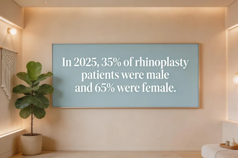 In 2025, <a href="https://www.allure.com/story/over-40-nose-job-trend-new-rhinoplasty-patient">Male patients represent 35% of rhinoplasty cases; females 65%</a> reflecting a continued female majority while male interest rises, especially among men over 50.