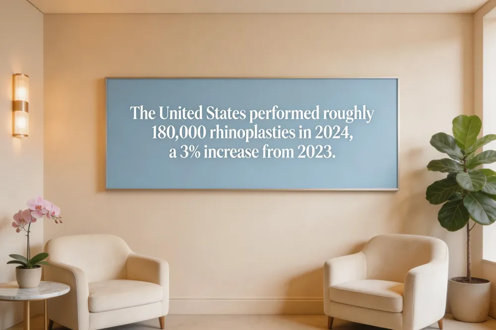 - In 2024, approximately 180,000 rhinoplasties were performed in the United States, a 3% increase from the previous year.