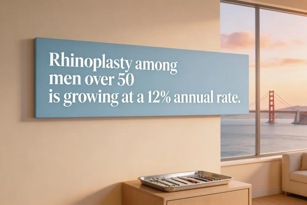 Men over 50 are the fastest‑growing rhinoplasty segment, with procedures rising 12% each year, driven by heightened aesthetic interest, functional breathing needs, and improved confidence overall.