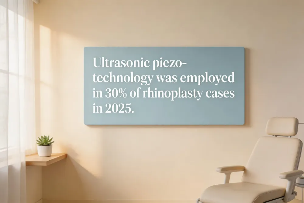 - Ultrasonic piezo‑technology was used in 30% of rhinoplasty cases in 2025, reducing swelling and bruising.