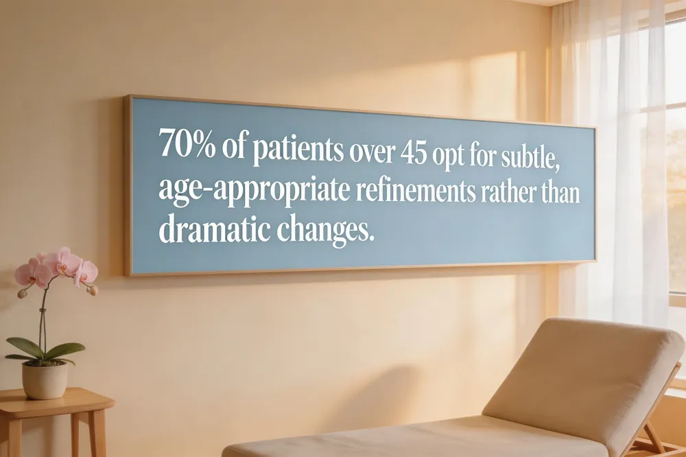 Seventy percent of patients over 45 now choose subtle, age‑appropriate refinements—dubbed “non‑nose‑job nose job”—over dramatic changes, mirroring the natural‑look trend and functional breathing care today.
