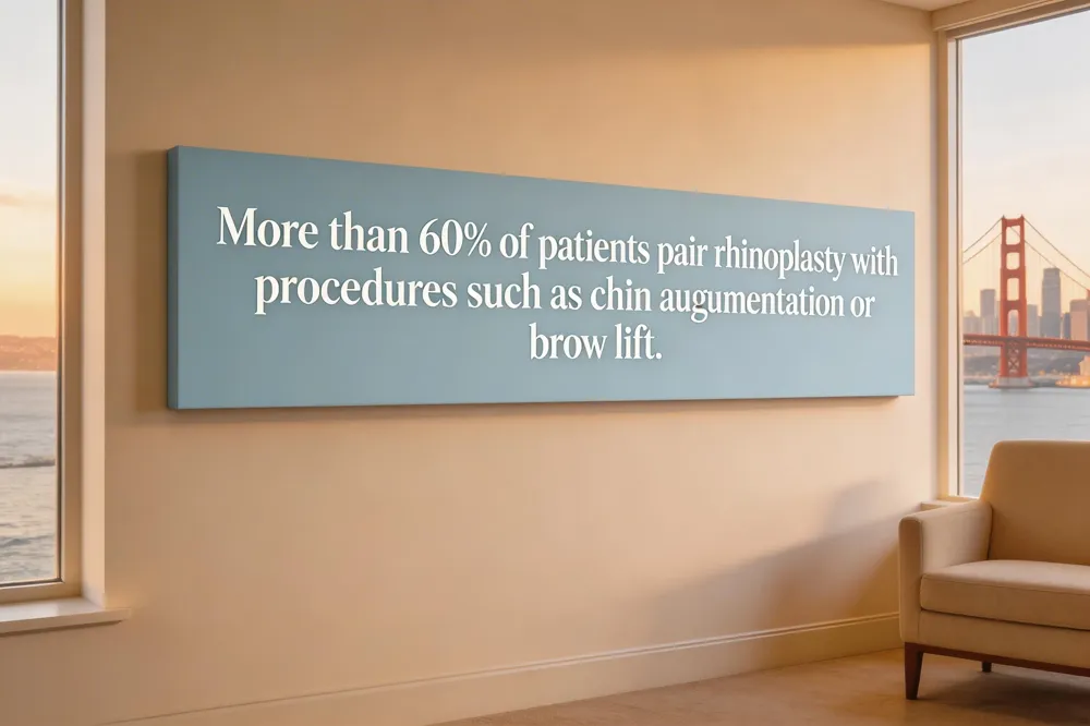 - Over 60% of rhinoplasty patients combine the procedure with complementary facial surgeries such as chin augmentation or brow lift.