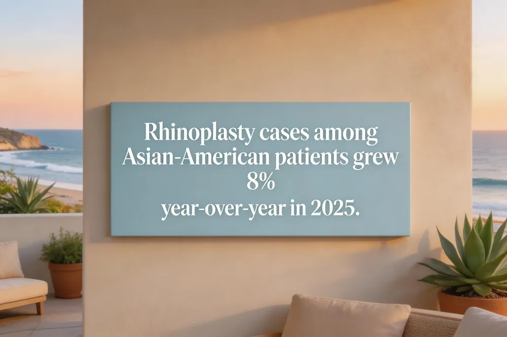 In 2025, Asian‑American rhinoplasty cases rose 8% year‑over‑year, reflecting growing demand for culturally‑sensitive facial enhancements and increased market share across the United States and beyond.