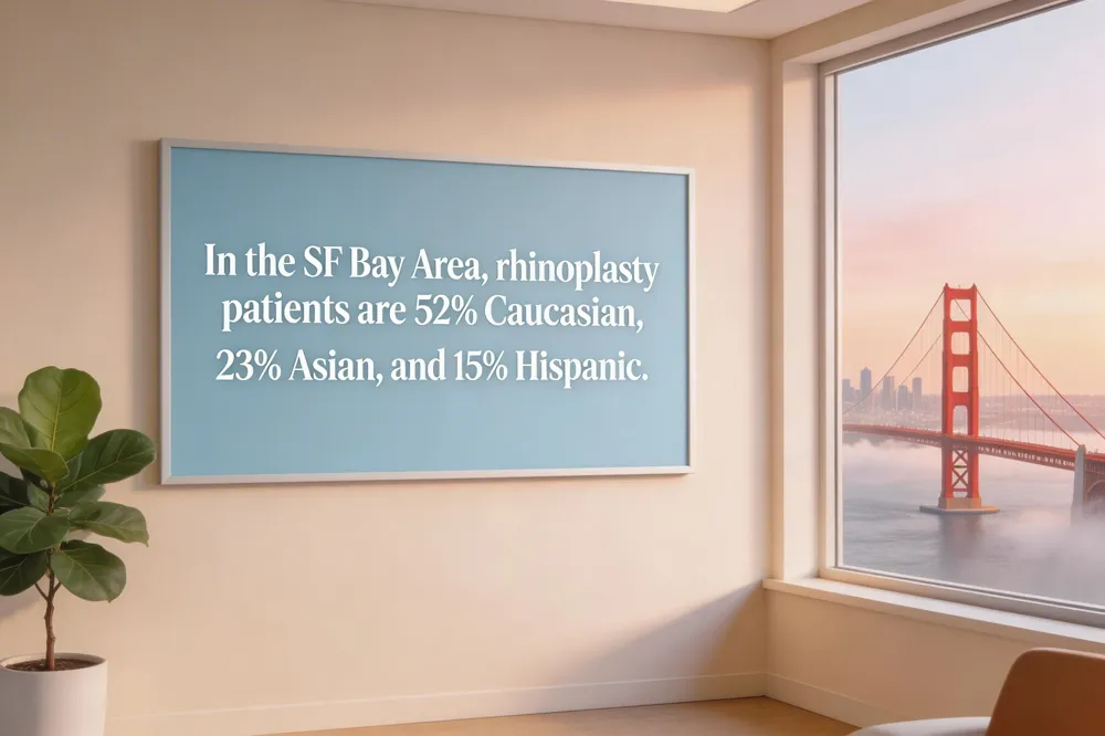 In the San Francisco Bay Area, rhinoplasty patients are 52% Caucasian, 23% Asian, and 15% Hispanic, reflecting regional diversity and demand for tailored nasal aesthetics.
