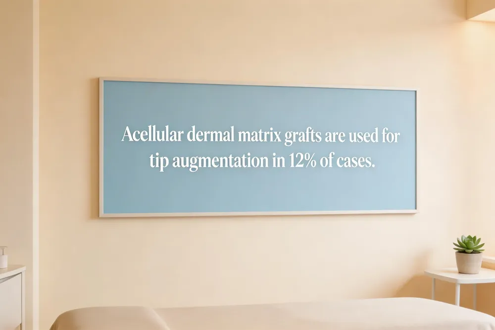 Acellular dermal matrix grafts now comprise 12% of tip augmentation procedures, reflecting a shift toward supports alongside rising cartilage graft use for nasal tip shaping.