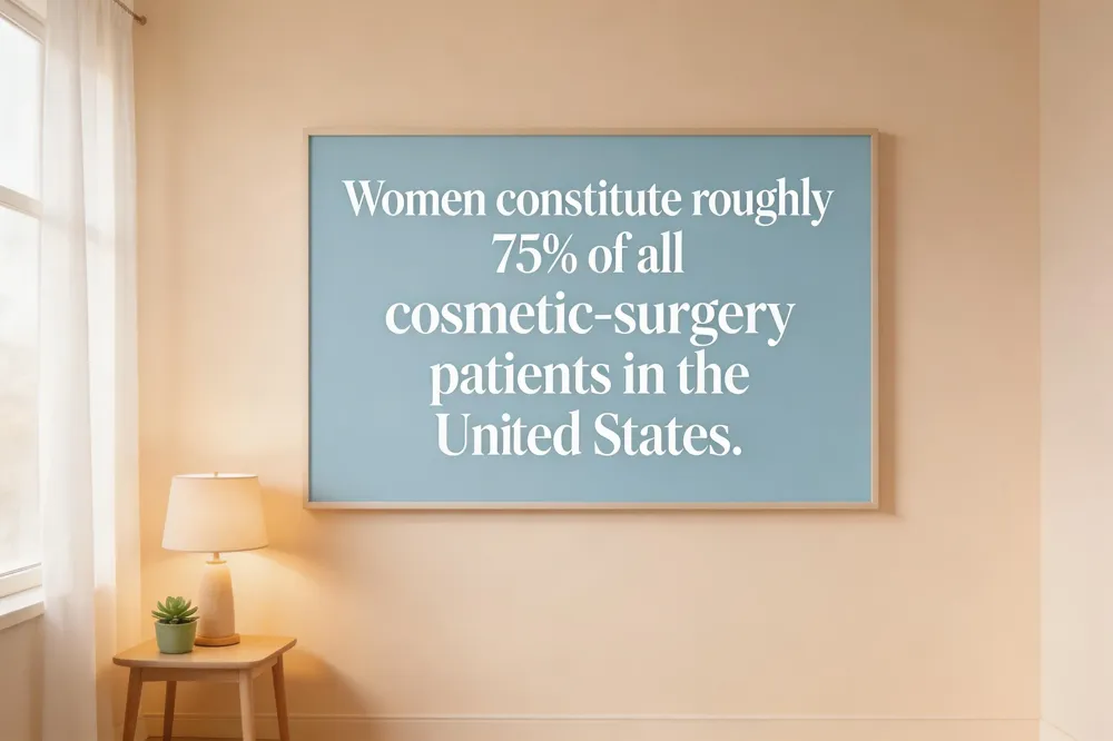 Women dominate the cosmetic‑surgery market in the United States. In rhinoplasty – one of the most common facial procedures – women represent roughly 78 % of all patients, while men account for about 22 % (ASPS, 2024‑2025 data). Across all cosmetic surgeries, the American Society of Plastic Surgeons (ASPS) reports that about 1.6 million surgical cosmetic procedures are performed each year, and the gender split mirrors the rhinoplasty trend, with women comprising the large majority of patients. Non‑surgical aesthetic treatments (e.g., Botox, dermal fillers) are even more heavily skewed toward women, accounting for about 70‑80 % of those procedures. Taken together, these figures indicate that roughly three‑quarters of cosmetic‑surgery patients in the U.S. are women, making them the primary demographic for both surgical and minimally invasive aesthetic interventions.
