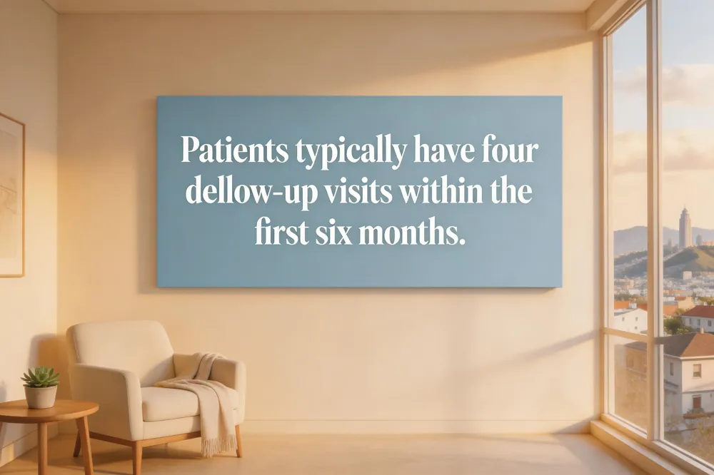 Patients typically schedule four post‑operative visits within six months, allowing surgeons to monitor healing, address complications, and adjust after‑care for optimal outcomes.