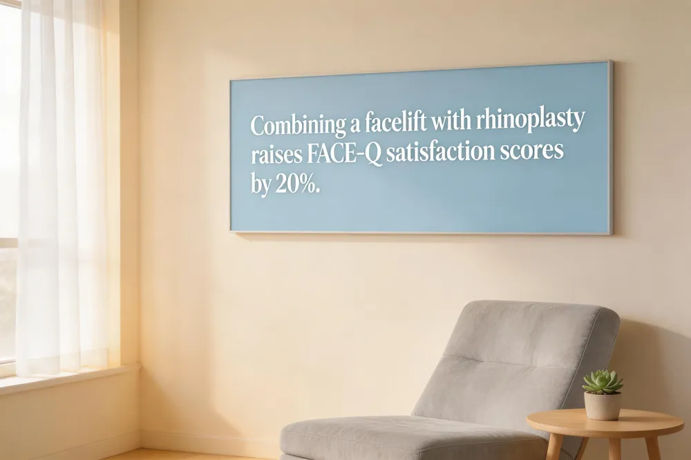 Combining a facelift with rhinoplasty yields a Patients combining rhinoplasty with facelift report 20% higher FACE‑Q satisfaction, reflecting higher overall patient satisfaction and harmonious facial results according to recent studies.