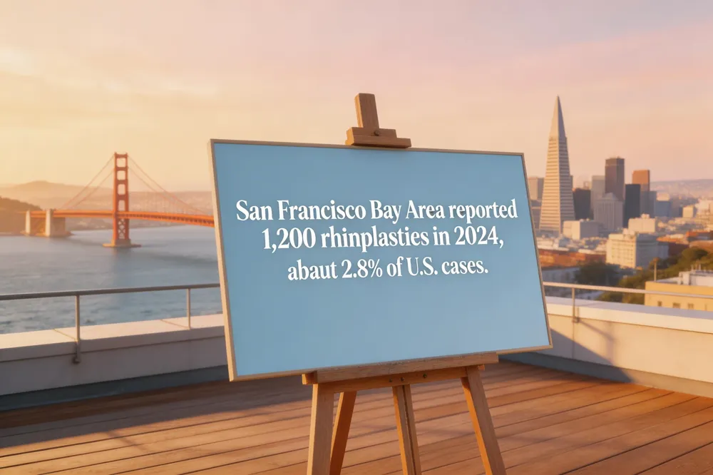 San Francisco Bay Area saw 1,200 rhinoplasties in 2024, representing 2.8% of U.S. cases and a 12% year‑over‑year growth, reflecting strong regional demand overall trend.