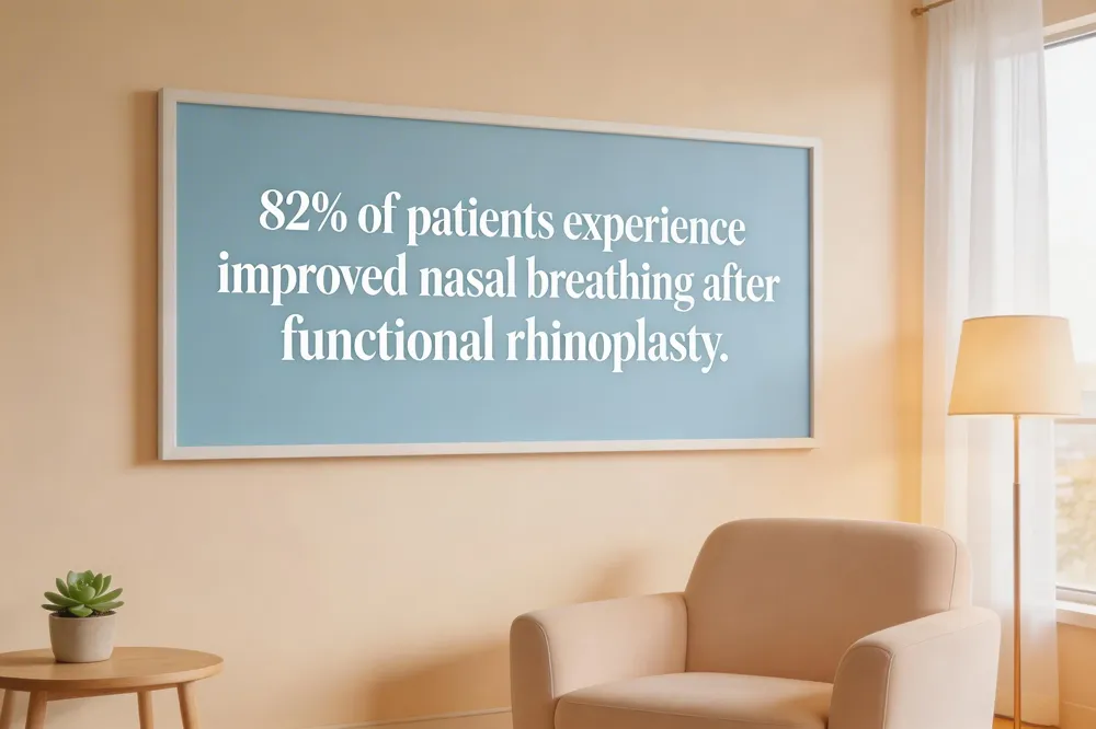 Functional rhinoplasty delivers notable breathing gains; 82% of patients experience reduced nasal obstruction, confirming effective functional outcomes and enhanced airway comfort post‑surgery and long‑term overall.