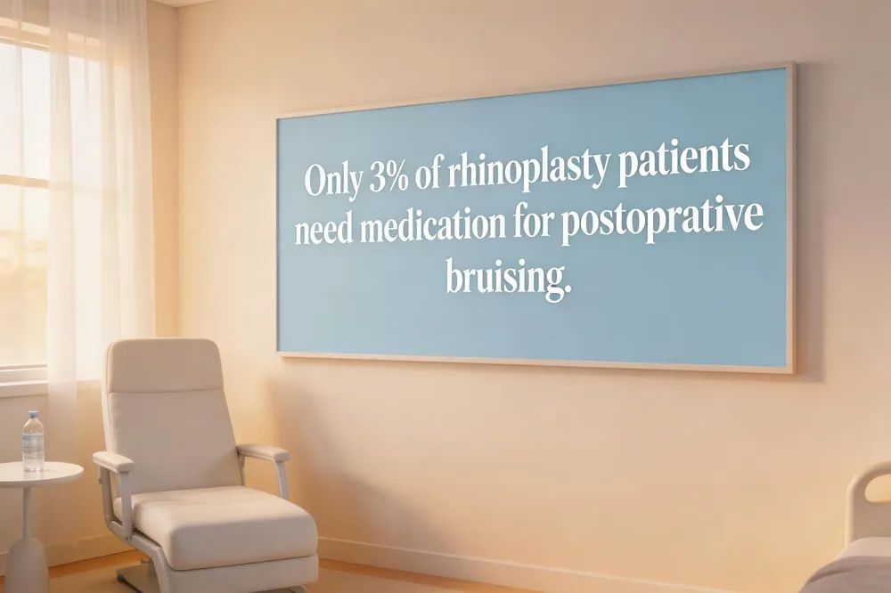 Post‑operative bruising appears in most patients, yet only three percent require medication; ultrasonic osteotomies and minimally invasive techniques keep swelling mild for patients and self‑limited.