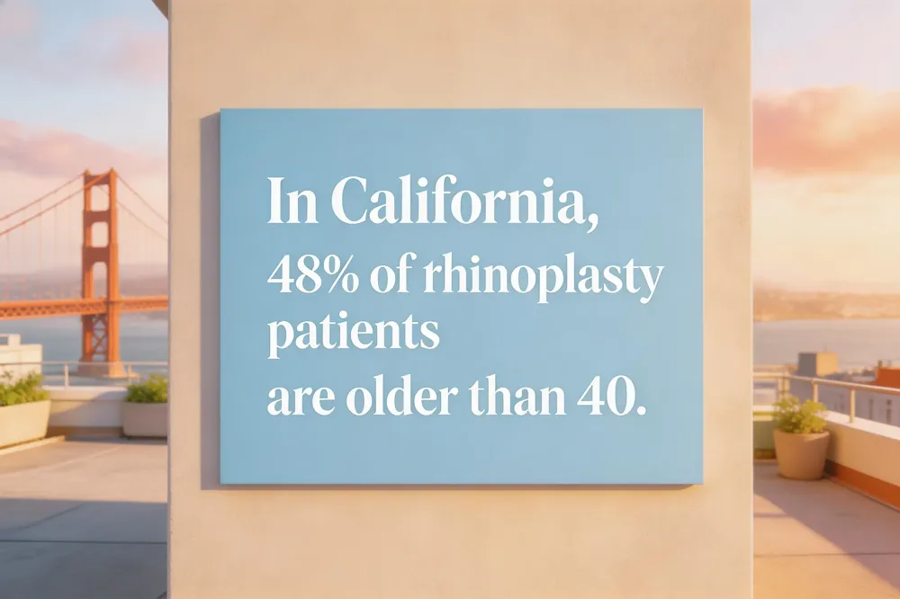In California, 48% of rhinoplasty patients are over 40, reflecting a shift toward mature, function‑seeking demographics and increased demand for subtle, age‑appropriate enhancements procedures today.