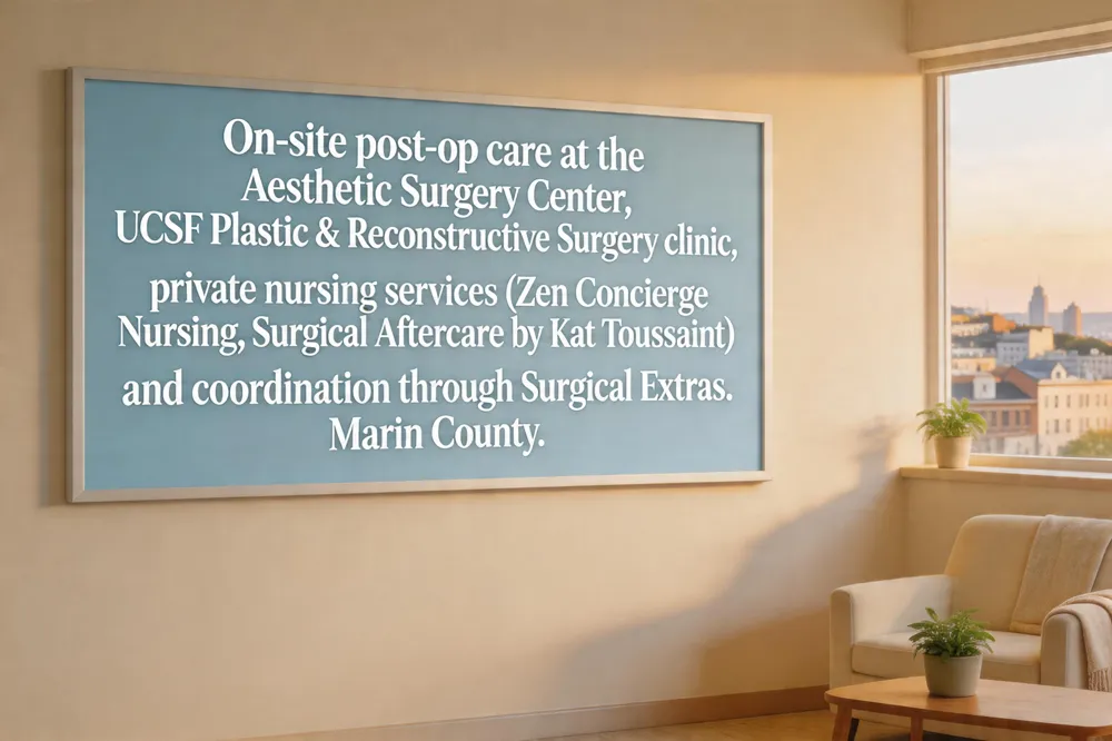The Aesthetic Surgery Center in San Francisco provides on‑site post‑operative care for facial and body procedures, including wound checks, suture removal, and scar‑management guidance. For those who prefer a hospital setting, the UCSF Plastic & Reconstructive Surgery clinic offers comprehensive follow‑up appointments, wound‑care nursing, and access to multidisciplinary support services. Private nursing options are abundant in the Mission District—Zen Concierge Nursing at 3354 20th Street delivers in‑home or hotel nursing, medication management, and lymphatic drainage therapy. Surgical Aftercare by Kat Toussaint supplies personalized post‑surgery nursing, transportation, and tele‑health check‑ins throughout the Bay Area. The Surgical Extras office in Marin County coordinates recovery plans for patients traveling to and from San Francisco, ensuring seamless continuity of care.